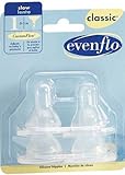 Evenflo Classic Silicone Nipples - Slow Flow, 4 Pack This soft silicone nipple is designed to be used with Evenflo's Classic Glass Nurser Bottle. The elongated shape makes it easier for your baby to latch on. ...Read more |